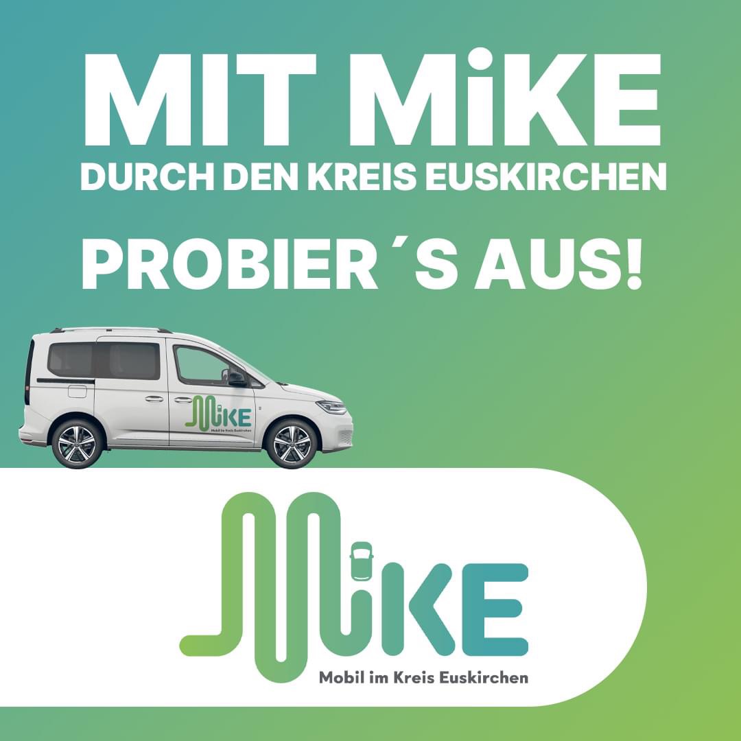 Viele Bürgerinnen und Bürger in Weyer haben ihn bereits gesehen: den MiKE-Kleinbus, der für mehr Mobilität im ländlichen Raum sorgt und Weyer direkt an wichtige Ziele im Kreis Euskirchen anbindet. MiKE steht für "Mobil im Kreis Euskirchen" und ist Teil des modernen Rufbus-Systems, das den herkömmlichen TaxiBusPlus ersetzt. MiKE bietet bequeme, flexible Fahrten ohne zusätzliche Kosten – ganz einfach, schnell und günstig!