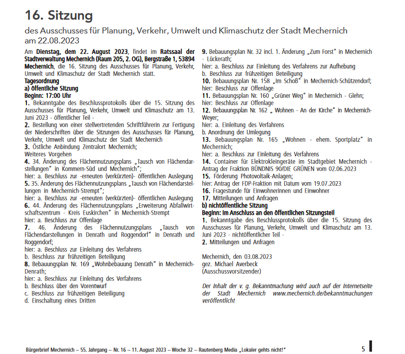 Aus dem Bürgerbrief Mechernich / 55. Jahrgang - Nr. 16 - 11. August 2023 - Woche 32 - Rautenberg Media