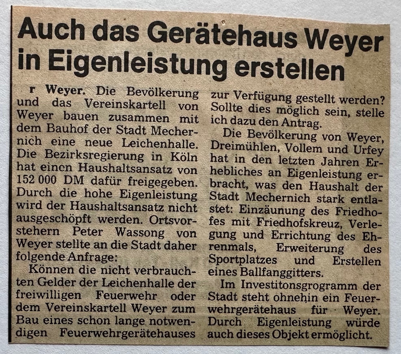 Auch das Gerätehaus Weyer in Eigenleistung erstellen