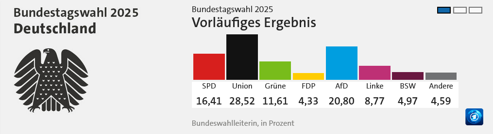Auf Bundesebene gewann die CDU wie im Vorfeld erwartet, allerdings weniger stark als erhofft. Gleichzeitig erlebten Parteien an den politischen Rändern sowohl links als auch rechts einen Zuwachs an Stimmen.