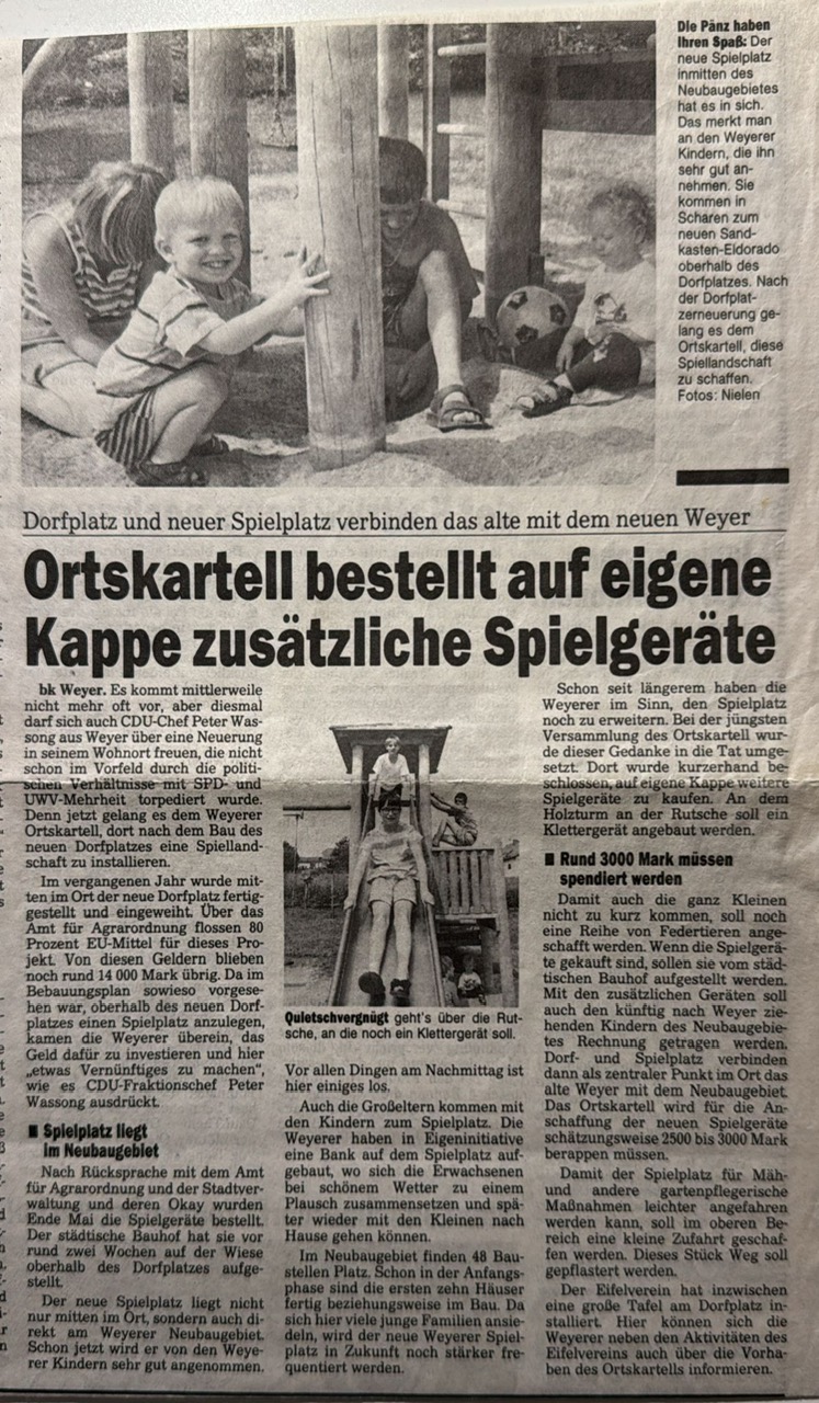 Ortskartell bestellt auf eigene Kappe zusätzliche Spielgeräte