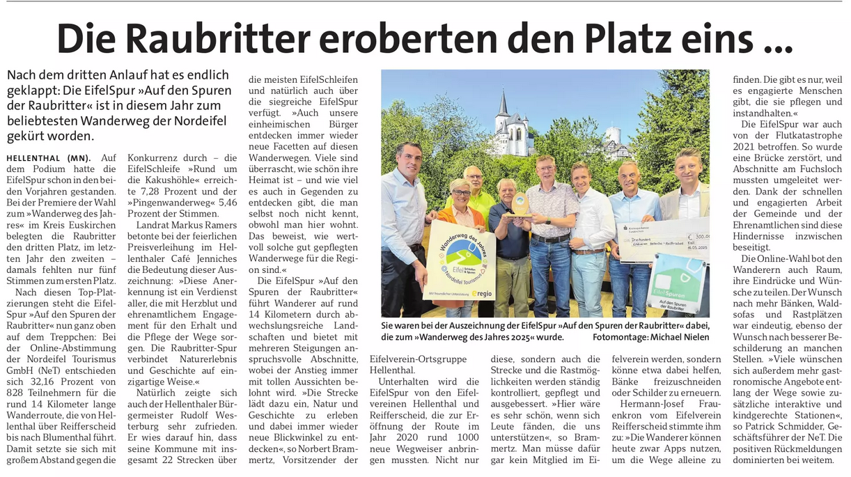 Auch wenn unsere Eifelschleife „Rund um die Kakushöhle“ bei der Abstimmung des Nordeifel Tourismus nicht zum Wanderweg des Jahres 2025 gewählt wurde, hat sie es auf den zweiten Platz der Abstimmung geschafft und darf sich dennoch über besondere Aufmerksamkeit freuen: