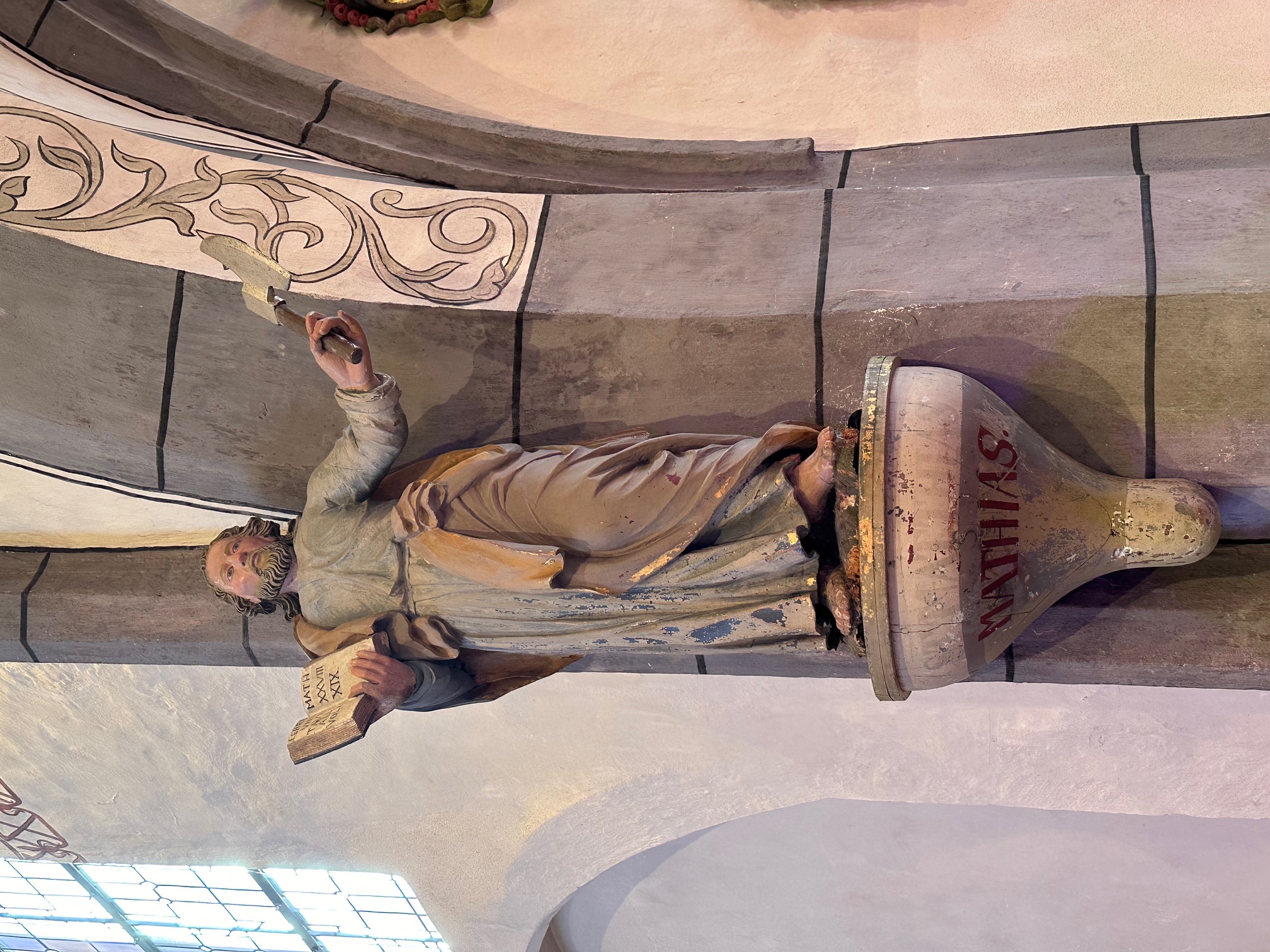 In der Ikonografie wird Matthias oft mit einem Buch dargestellt, das für sein Apostelamt und die Verbreitung des Evangeliums steht. Zudem trägt er häufig eine Axt, die auf sein mögliches Martyrium hinweist, da einige Überlieferungen berichten, dass er durch Enthauptung oder Steinigung getötet wurde. Diese Darstellungen symbolisieren seine Rolle als Verkünder des Glaubens und als Märtyrer für seinen Glauben.