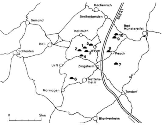 1 Hovenzeley (Mechernich); 2 Höhe 475, Weyerer Wald (Mechernich);