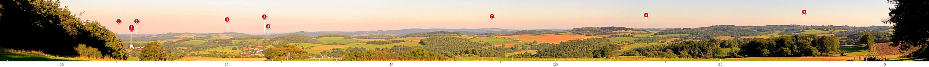 Davor ist eine Informationstafel aus der Initiative Eifel-Blicke aufgestellt. Bei entsprechender Witterung haben Besucher einen Blick auf (von Westen nach Osten): die Zülpicher Börde, Köln, Weyer, Weiler am Berge, der Astropeiler Stockert, das Siebengebirge, das Naturschutzgebiet Eschweiler Tal und Kalkkuppen, der Eifel-Blick auf den Michelsberg, die Hohe Acht sowie Zingsheim.