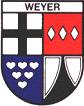 ist das Wappen derer von Weichs. 1638 belehnte Erzbischof Ferdinand von Köln den Gaudenz von Weichs mit Weyer. Die letzte Belehnung an die Familie von Weichs erfolgte im Jahre 1785 an Ferdinand von Weichs.