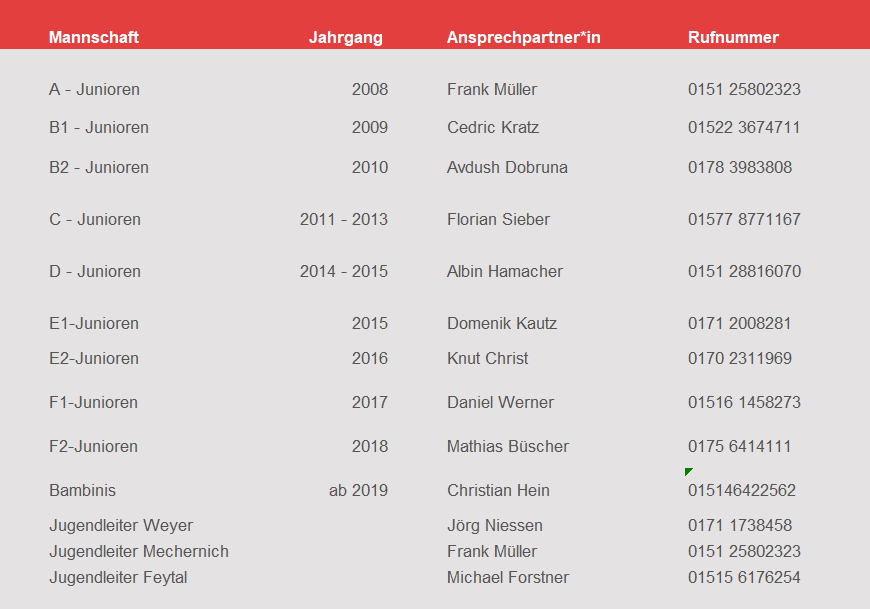 Ansprechpartner Jugendmannschaften